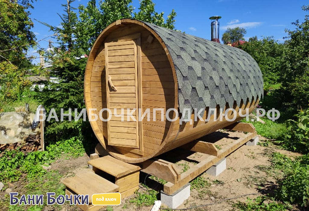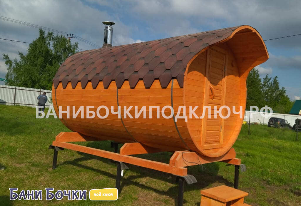 Баня бочка под ключ в Обнинске купить от производителя по проектам 2, 3, 4, 5, 6 метров по лучшей цене с доставкой и установкой или со сборкой прямо на месте. Используем натуральные и экологичные материалы, работаем по договору и предоплате всего в 10000 рублей, а также даем гарантию в течение 1 года. Они отлично впишутся на любой участок или дачу и будут радовать всю вашу семью, родных, близких и друзей. Не требуют усадки, поэтому париться можно уже в первый день. Позвоните нам, мы подберём под ваш бюджет и потребности!